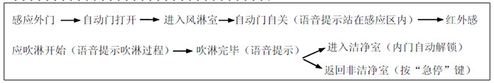 a.在內(nèi)外門關閉時,按下手動按鍵,系統(tǒng)即轉入風淋過程3.2。