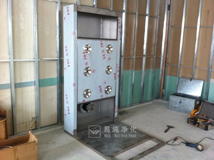 (八)風淋安裝完成之的需要用密封膠對一些縫隙進行密封,易純一般采用道康寧密封膠密封,環保無氣味。經過以上七個步驟,風淋室已經全部安裝完成,現在可以正常使用風淋室了。且用且注意,風淋室具備電子聯鎖功能,一門打開時,另一門無法打開,在使用過程中,使用過程中雙門都無法打開。切不可強行推拉門,以避免將門鎖損壞。