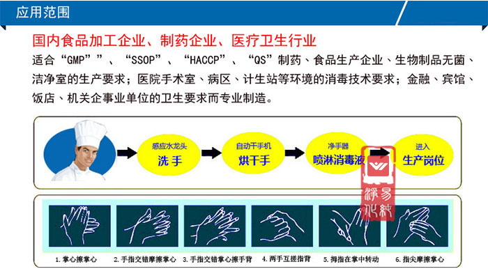 食品、包裝行業QS認證主要會應用到哪些凈化設備呢?主要為風淋室幕機臭氧發生器酒精感應式手消毒器高速烘手機不銹鋼水池紫外線殺菌燈等。(點擊以下圖片查看詳細資料)
