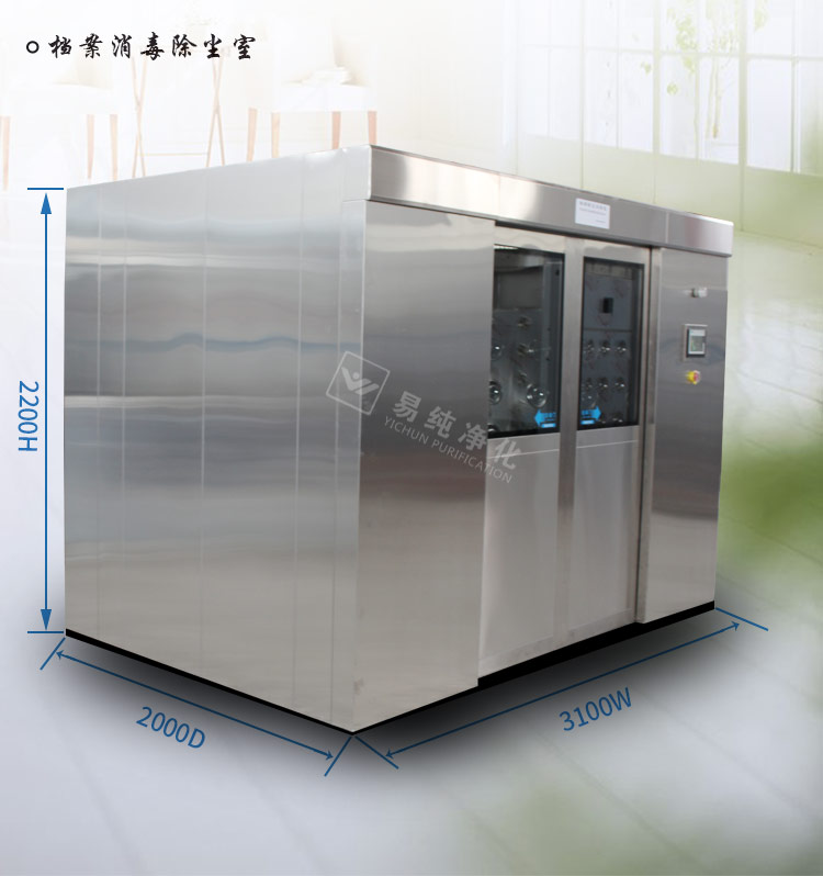 1) 檔案除塵消毒室內外均為304不銹鋼,表面為拉絲或鏡面處理,不銹鋼厚度1.2mm;