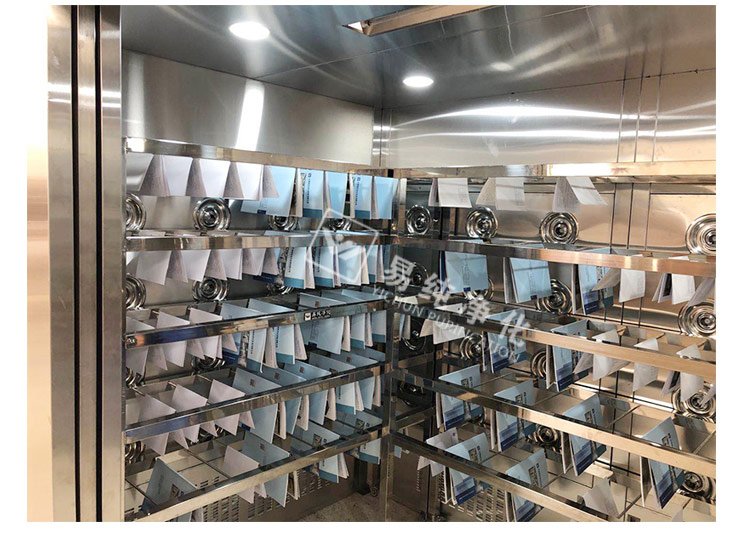 5)工作指示燈指示工作狀態,時間未到,門無法打開;達到設定的時間后,指示燈變綠,可選擇繼續長時間消毒或開門取出檔案車。